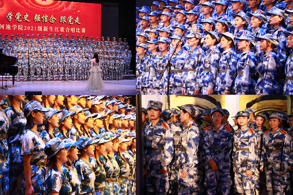 比赛通过任选红歌与必选校歌《吾校光芒》的形式呈现,在美术与设计学院的《灯火里的中国》中拉开了序幕,他们歌声悠扬,唱出了我校青年学生对祖国的美好祝愿。随后马克思主义学院带来的《十送红军》唱出了军民的鱼水情,唱出了革命根据地人民对红军的深厚感情以及对革命成功的强烈期盼。公共管理学院的《歌唱祖国》、人工智能与制造学院的《军港之夜》、数理学院的《没有共产党就没有新中国》、音乐舞蹈学院的《我宣誓》、大数据与计算机学院的《祖国不会忘记》、文学与传媒学院的《鼓浪屿之波》、体育学院的《保卫黄河》、化学与生物工程学院的《祖国不会忘记》、外国语学院的《黄水谣》以及商学院的《歌唱祖国》更是将汇演带向了一个又一个高潮,最后演出的是刘三姐大学生艺术团带来的精彩节目《向往》,每个节目的必选校歌《吾校光芒》歌声朗朗,唱出我校的精神风貌,增强了新生对学校的归属感。