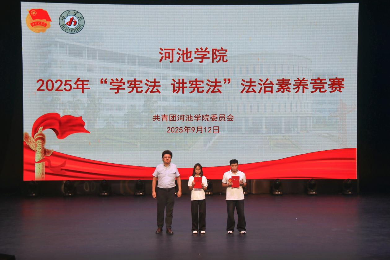 为深入学习宪法知识,增强师生宪法意识,2025年9月12日晚,在艺术楼表演厅举办“学宪法 讲宪法”法治素养竞赛,我校教师及学生代表参加了此次活动。